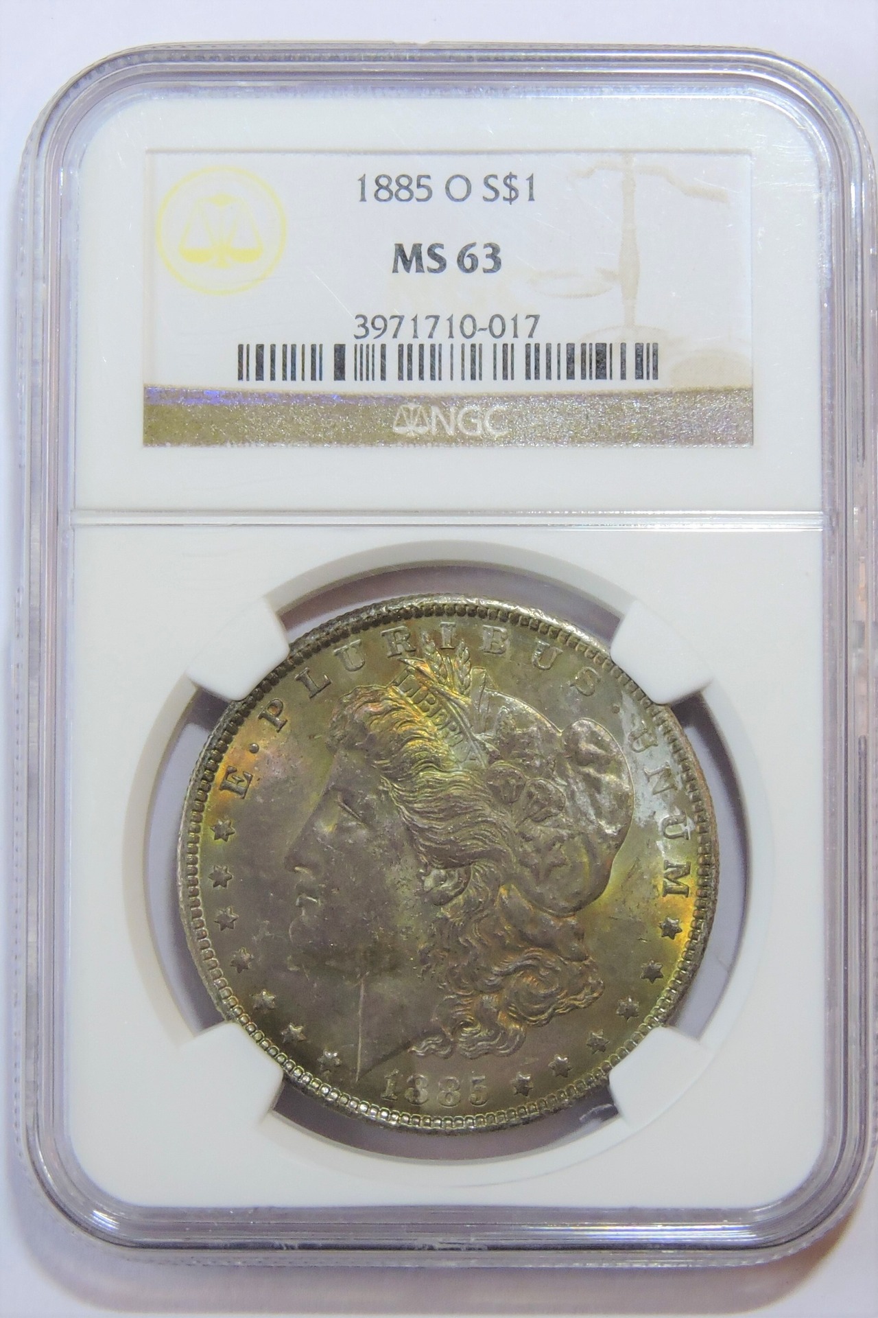 アメリカ 1885-o モルガンダラー 1ドル 銀貨 MS63 NGC レインボートーン